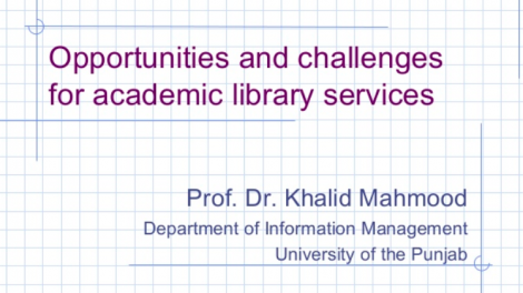Opportunities and challenges for academic library services from Khalid Mahmood
