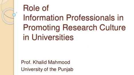 Role of information professionals in promoting research culture from Khalid Mahmood